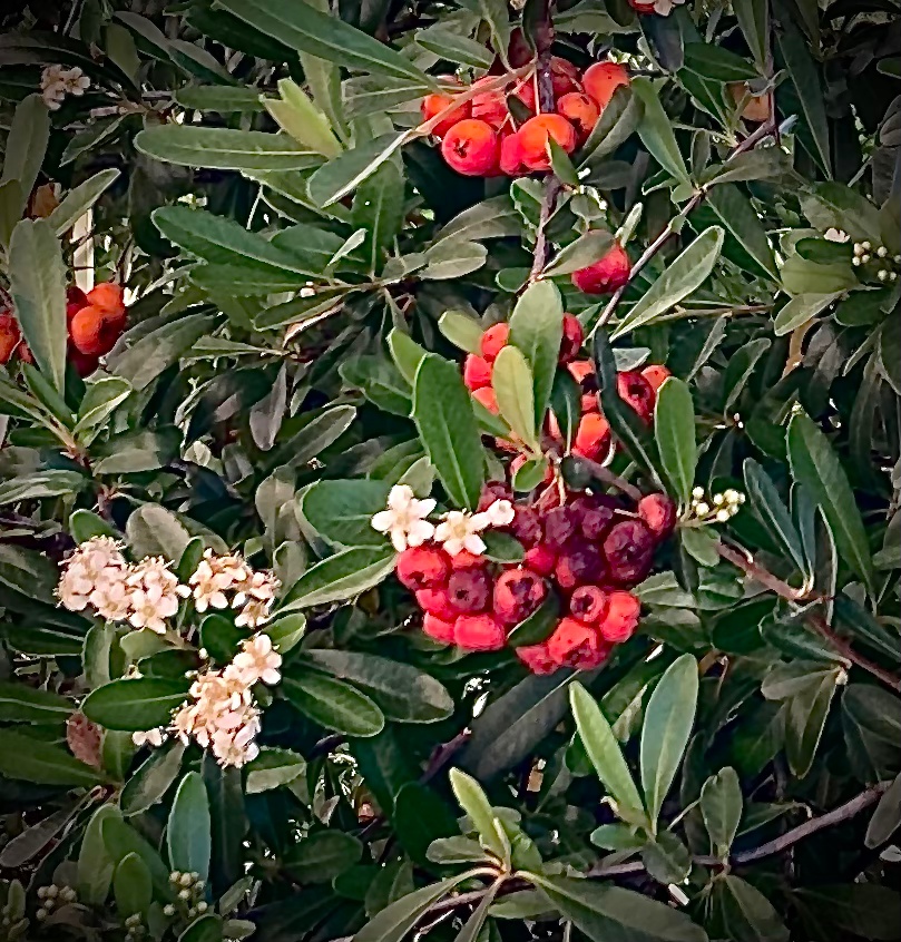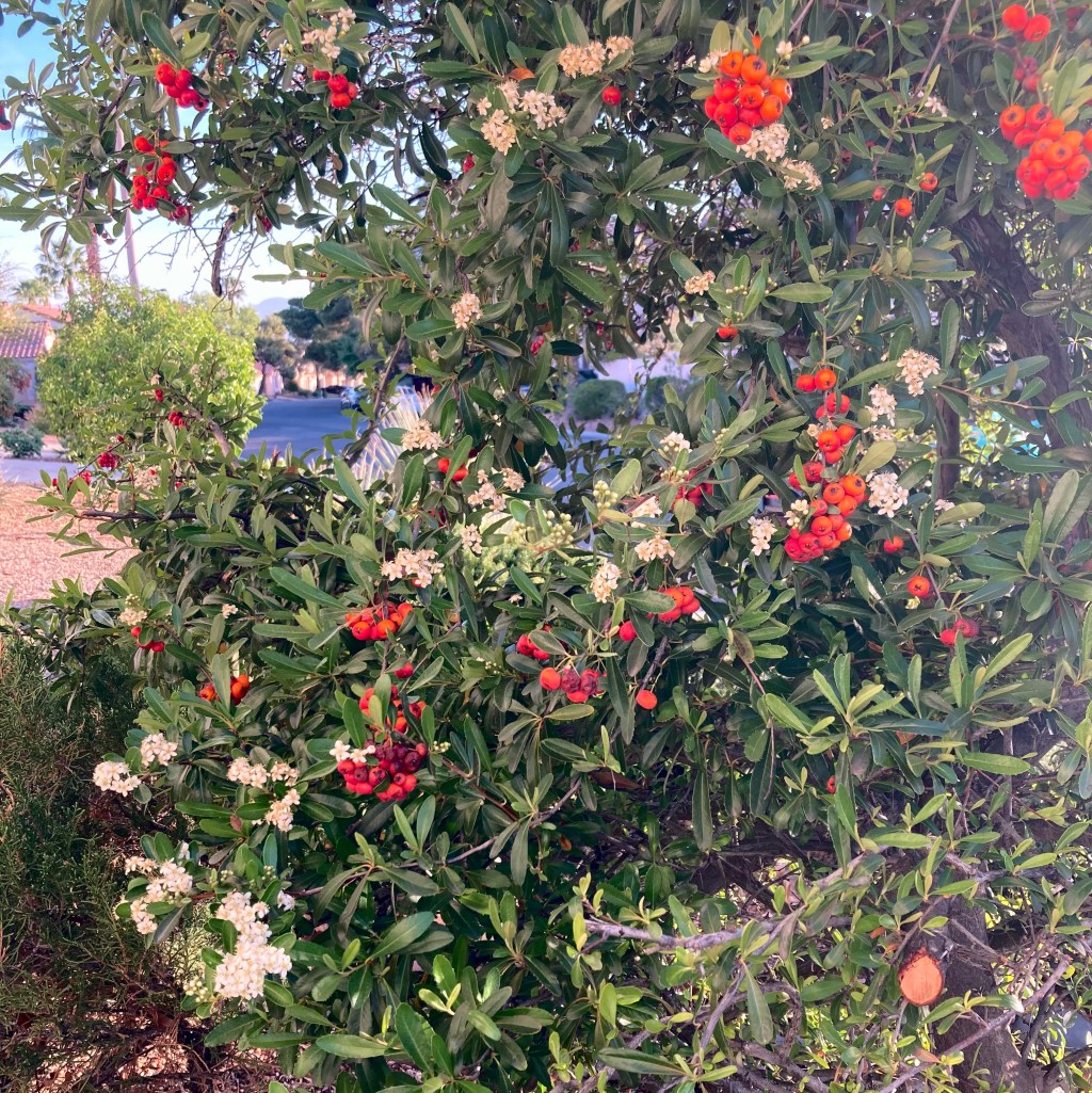 《七律.红豆》时三月,暖冬早春临夏。门前有一株红豆,竟不拘季节,红果白花绿叶共枝。今日世界战乱纠纷。拉斯维加斯,此处时空交错:从秋到春,一留一纵。逍遥间,遂不听世间那些不休的险恶与吵嚷。